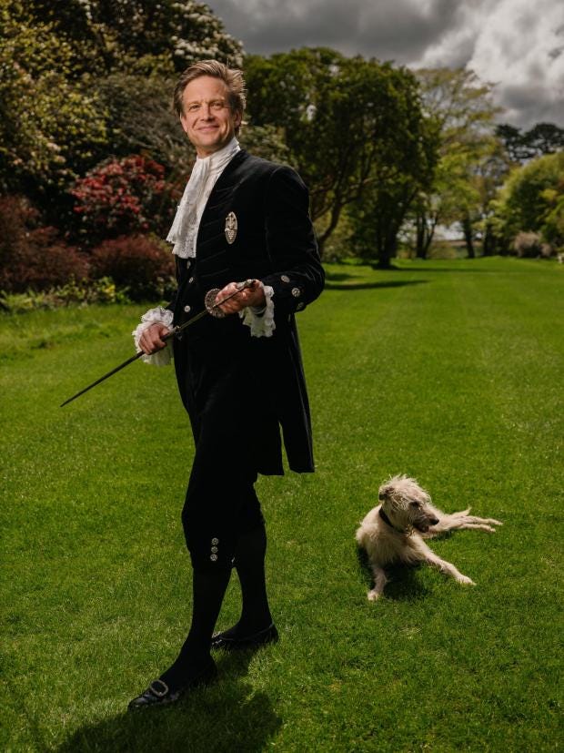 While he lives in a stately home, he assures me this isn’t his daily attire.